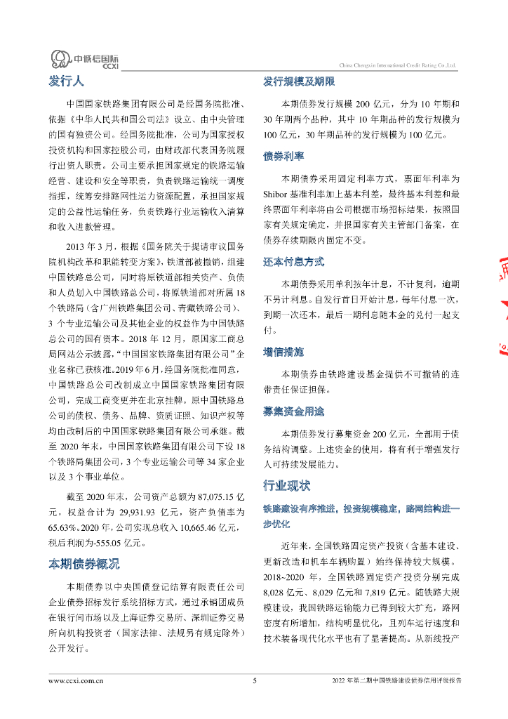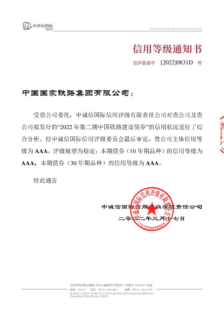 中诚信:2022年第二期中国铁路建设债券信用评级报告.pdf