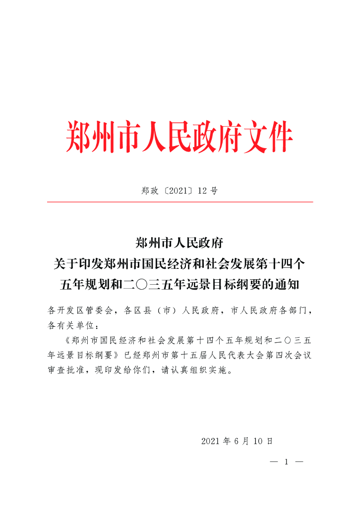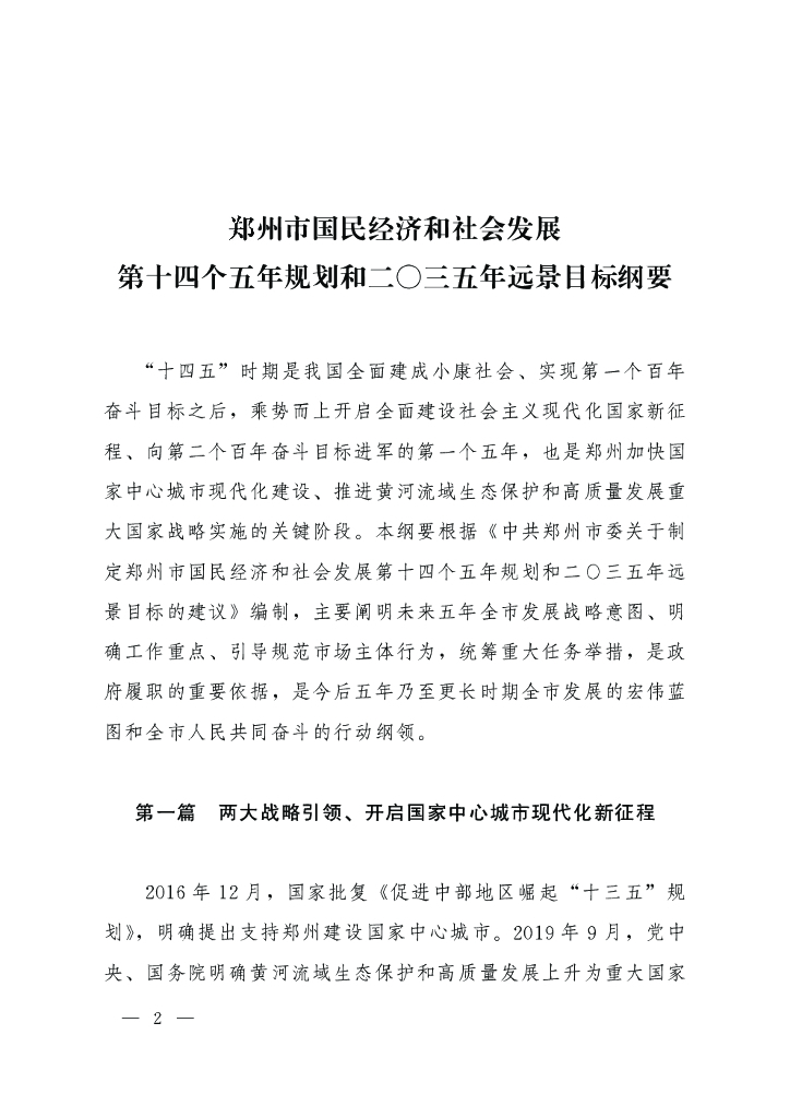 郑州市国民经济和社会发展第十四个五年规划和二〇三五年远景目标纲要.pdf