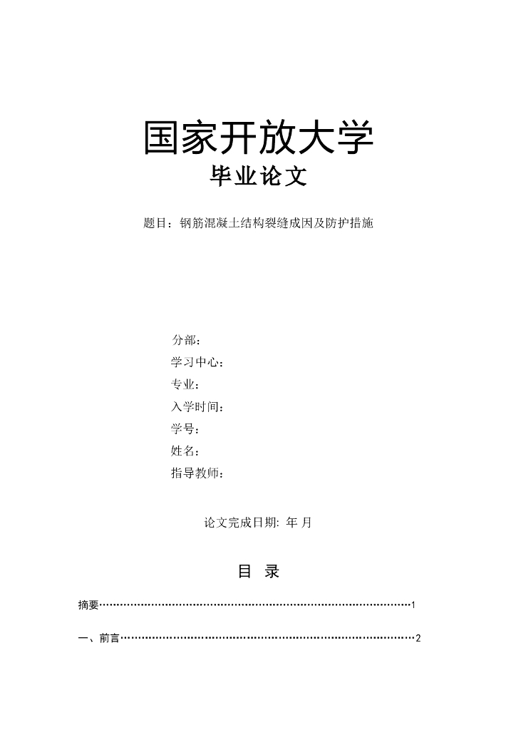 [毕业论文]钢筋混凝土结构裂缝成因及防护措施.doc