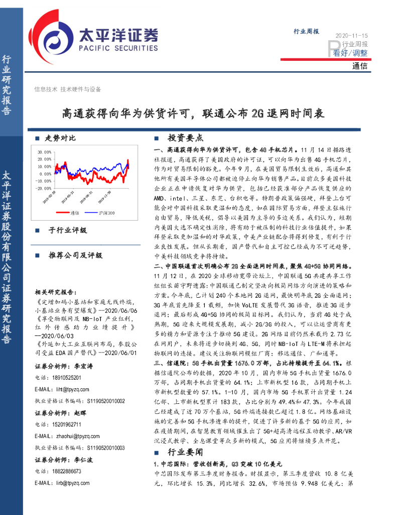 太平洋证券:通信行业周报:高通获得向华为供货许可,联通公布2G退网时间表.pdf