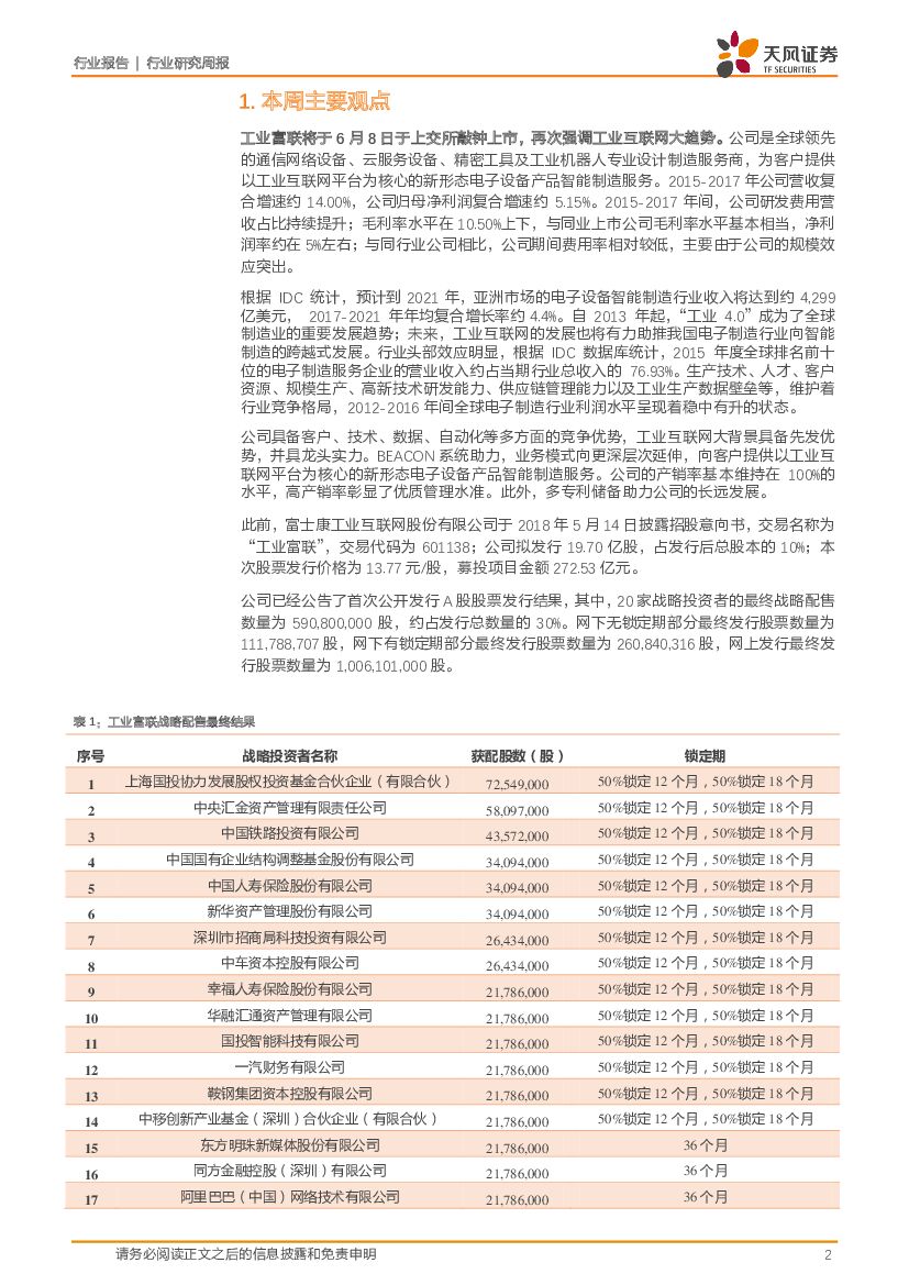 天风证券:电子制造行业研究周报:重视工业互联网,迎接三季度景气.pdf