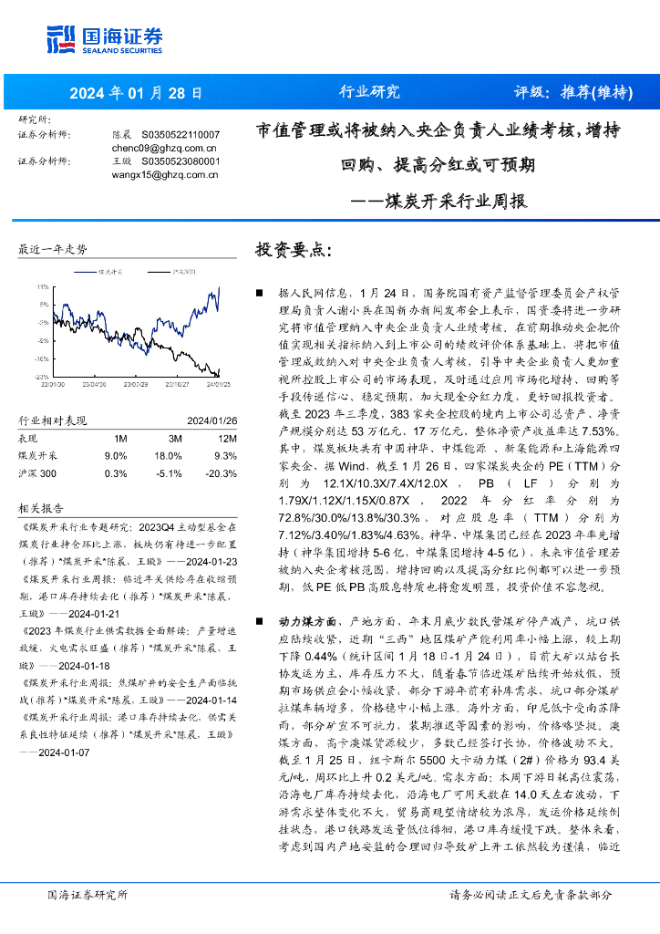 国海证券:煤炭开采行业周报:市值管理或将被纳入央企负责人业绩考核,增持回购、提高分红或可预期.pdf