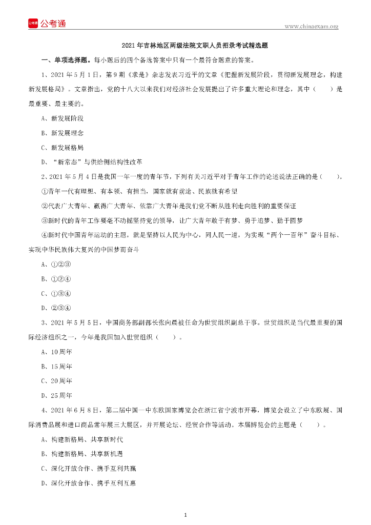 2021年吉林地区两级法院文职人员招录考试精选题.pdf