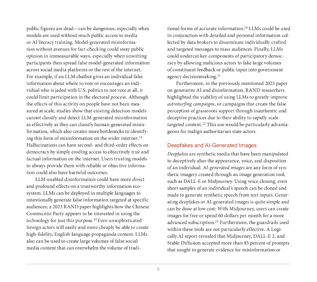 Rand兰德:2024年生成式人工智能对信息完整性的威胁及潜在政策回应报告(英文版).pdf
