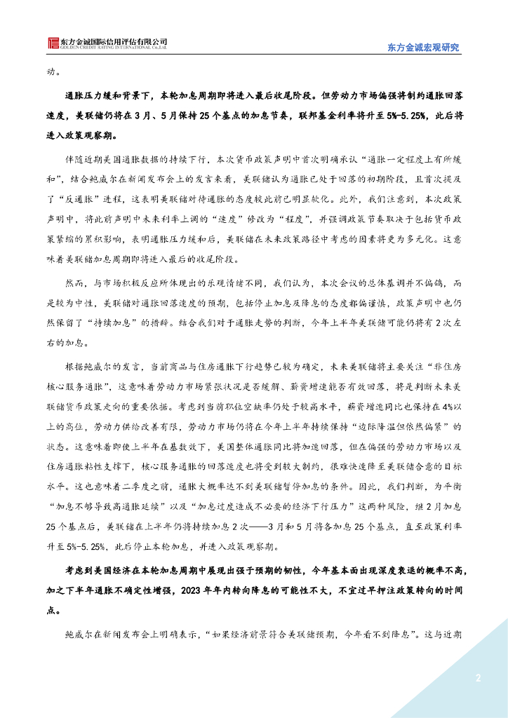 东方金诚:美联储加息进入收尾阶段,但年内降息可能性依然偏低——美联储2月货币政策会议点评与展望.pdf