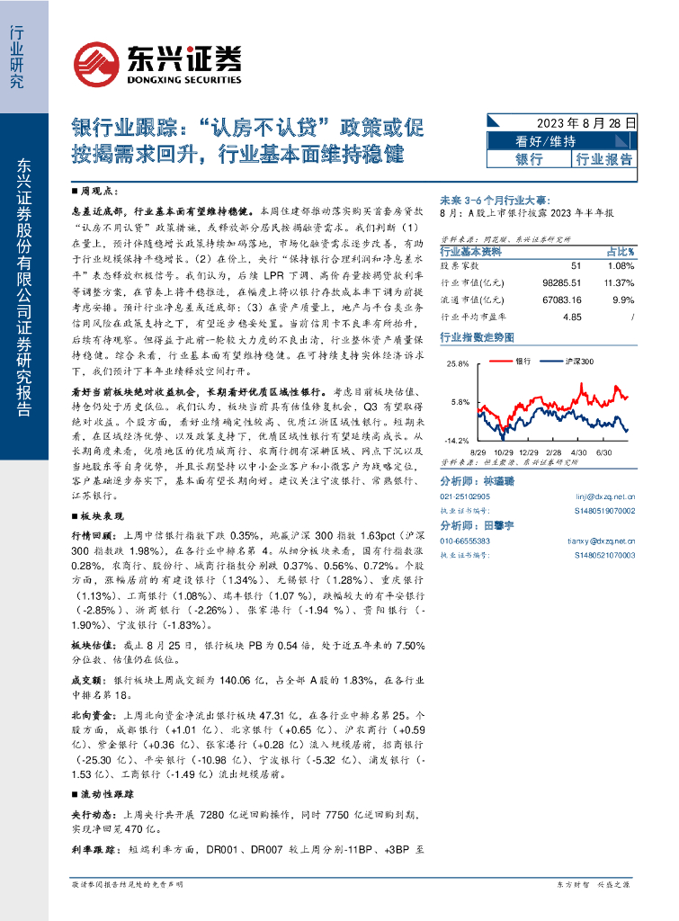 东兴证券:银行业跟踪:“认房不认贷”政策或促按揭需求回升,行业基本面维持稳健.pdf