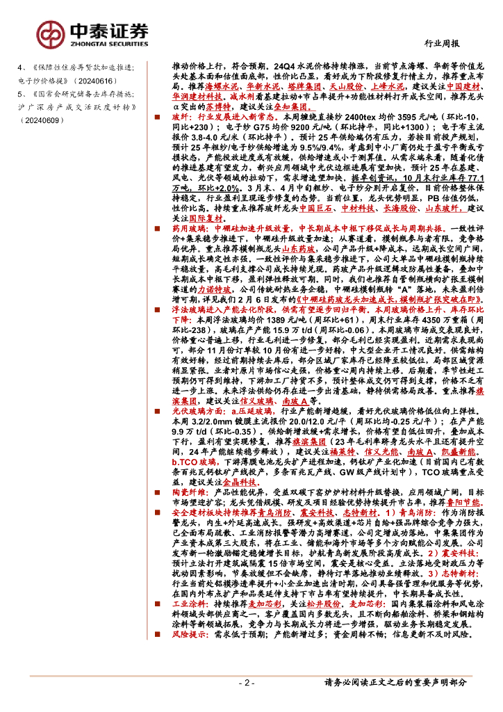 中泰证券:建筑材料行业:化债政策力度超预期;水泥价格近期持续推.pdf