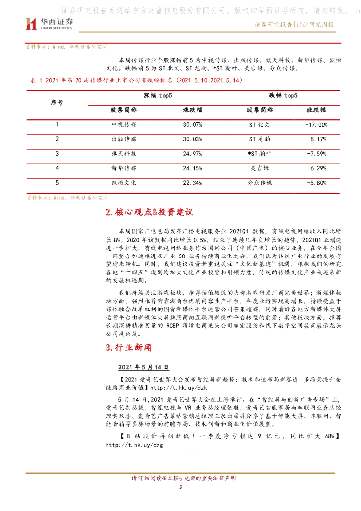 华西证券:传媒行业周报2021年第20周:Q1有线网收入增速扩大,关注“文化新基建”.pdf