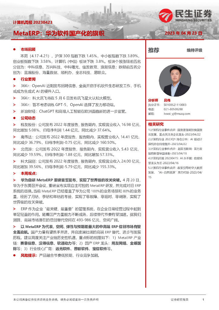民生证券:计算机周报:MetaERP:华为软件国产化的旗帜.pdf