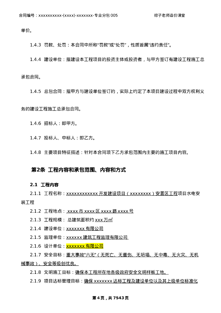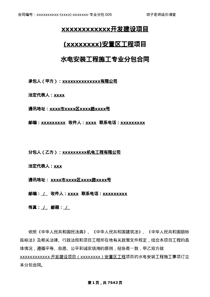 水电安装工程施工专业分包合同.doc