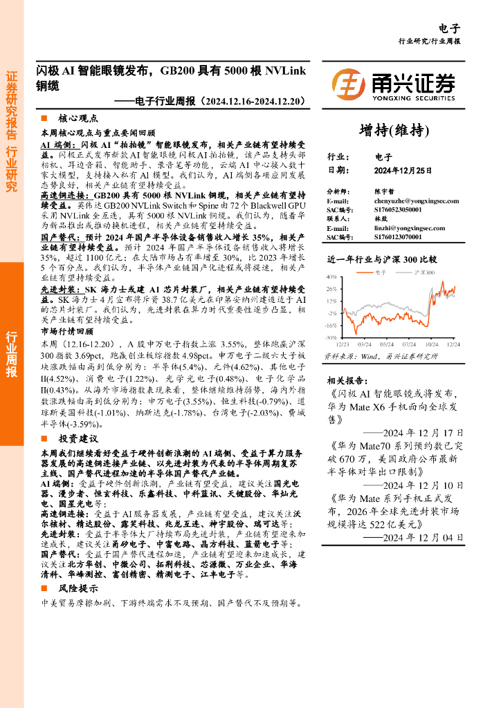 甬兴证券:电子行业周报:闪极AI智能眼镜发布,GB200具有5000根NVLink铜缆.pdf