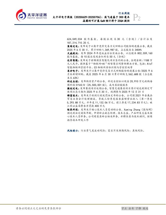 太平洋证券:电子行业周报:英飞凌基于300毫米晶圆的可扩展GaN预计将于25Q4提供.pdf