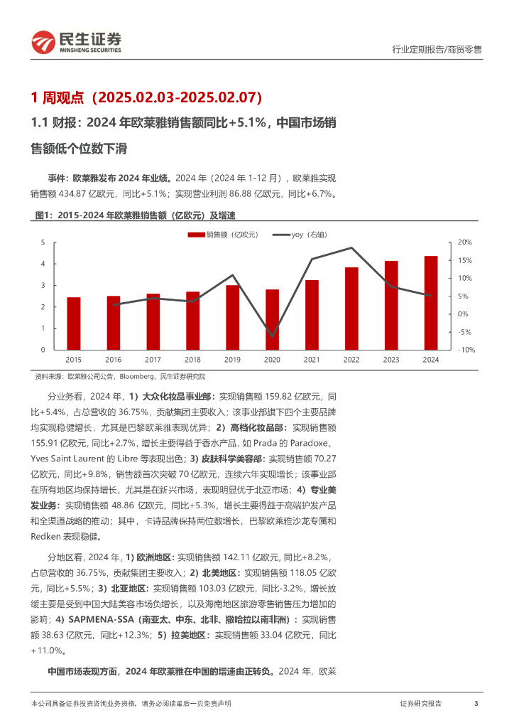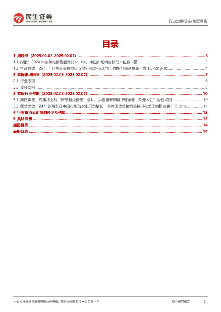 民生证券:零售周观点:24年欧莱雅销售额同比+5.1%,25年1月抖音美妆同比+6.4%.pdf
