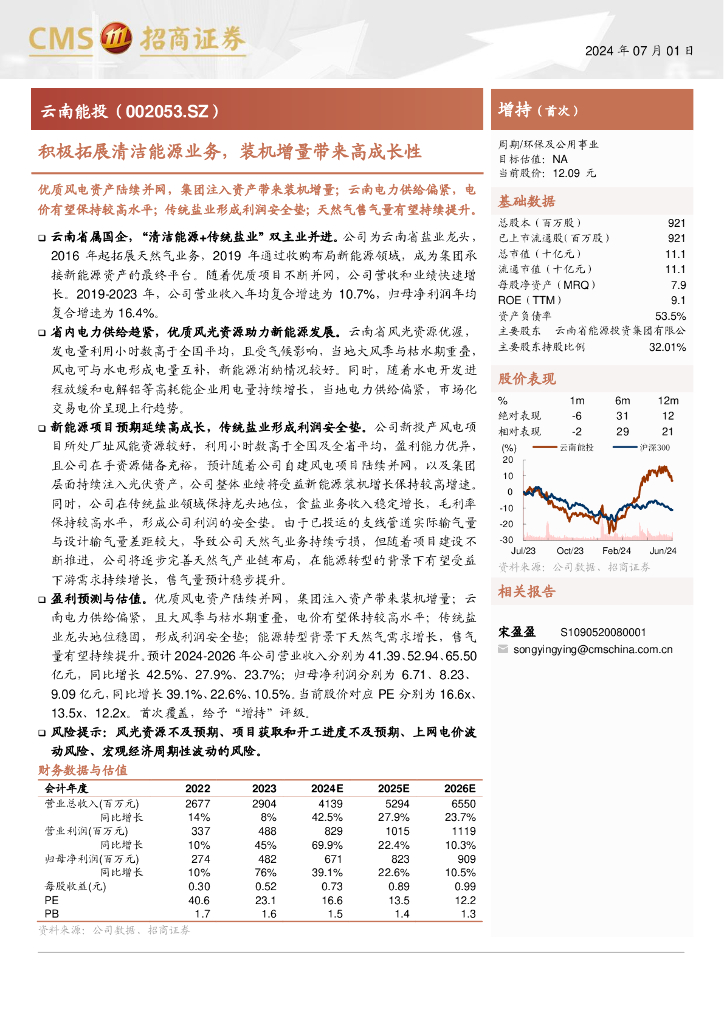 招商证券:云南能投(002053.SZ)积极拓展清洁能源业务,装机增量带来高成长性.pdf