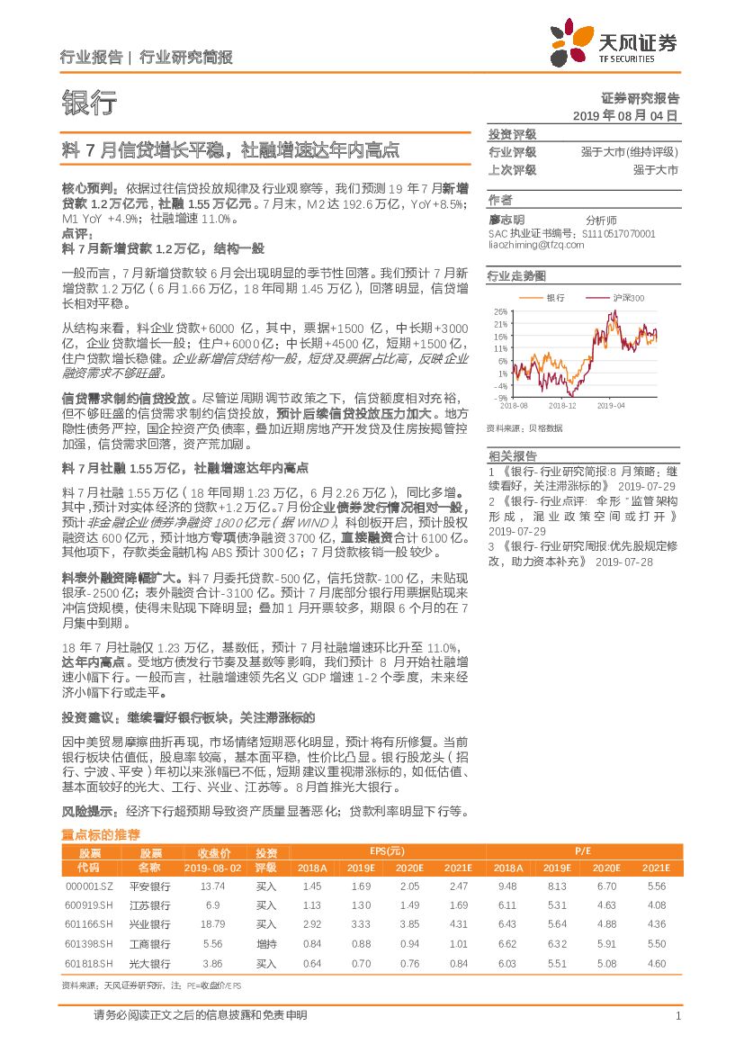天风证券:银行:料7月信贷增长平稳,社融增速达年内高点.pdf