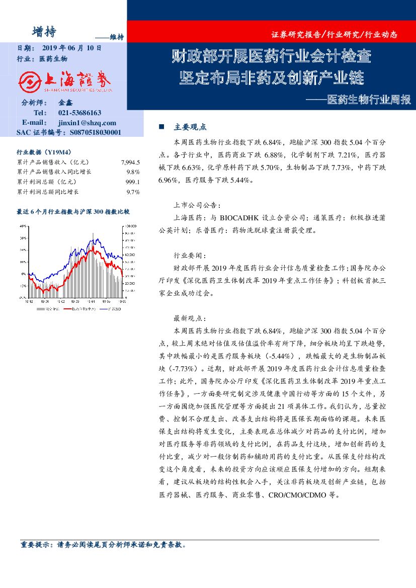 上海证券:医药生物行业周报:财政部开展医药行业会计检查 坚定布局非药及创新产业链.pdf