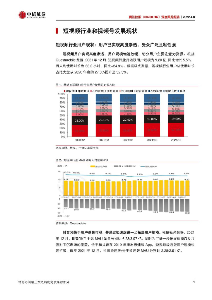 中信证券:腾讯控股深度跟踪报告:微信视频号用户规模发展迅速,广告计划开启商业化贡献收入弹性.pdf