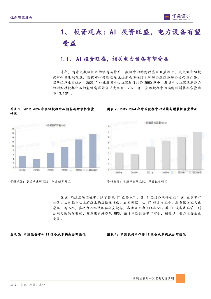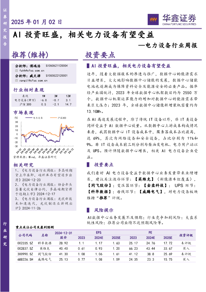 华鑫证券:电力设备行业周报:AI投资旺盛,相关电力设备有望受益.pdf