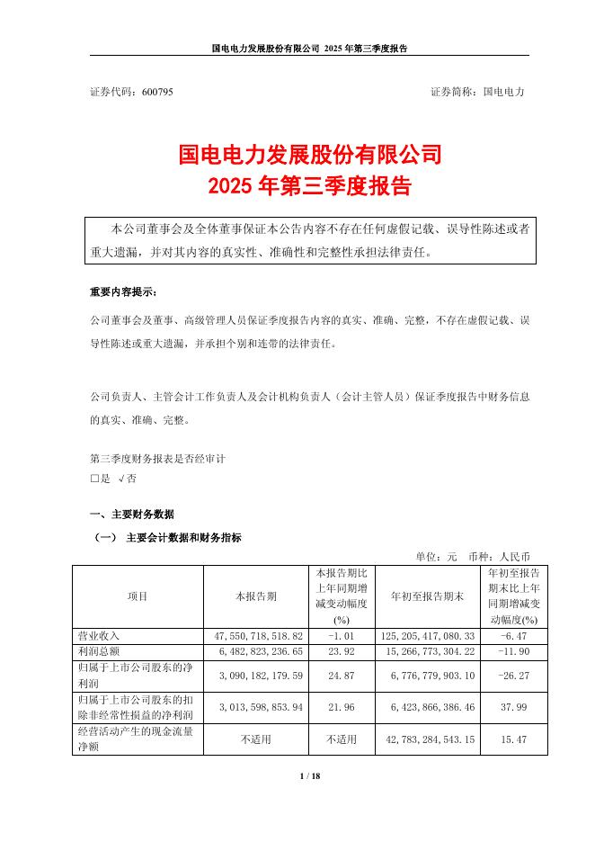 600795-国电电力:国电电力2025年第三季度报告.pdf