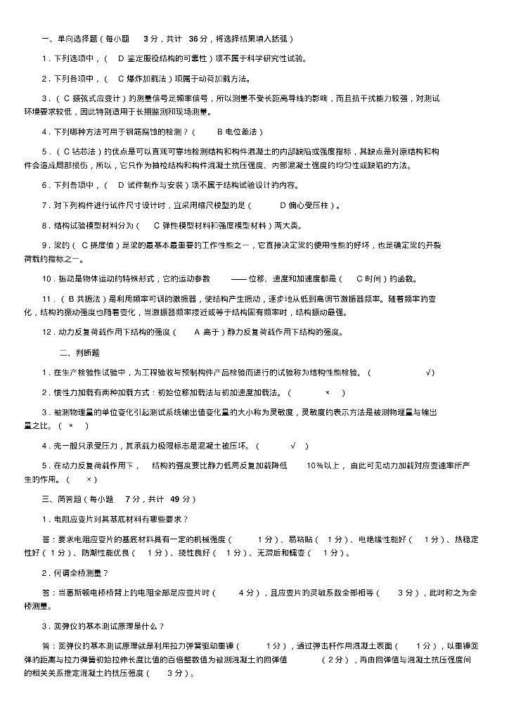 建筑结构试验期末复习题.pdf
