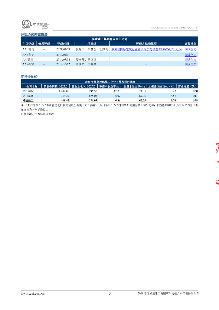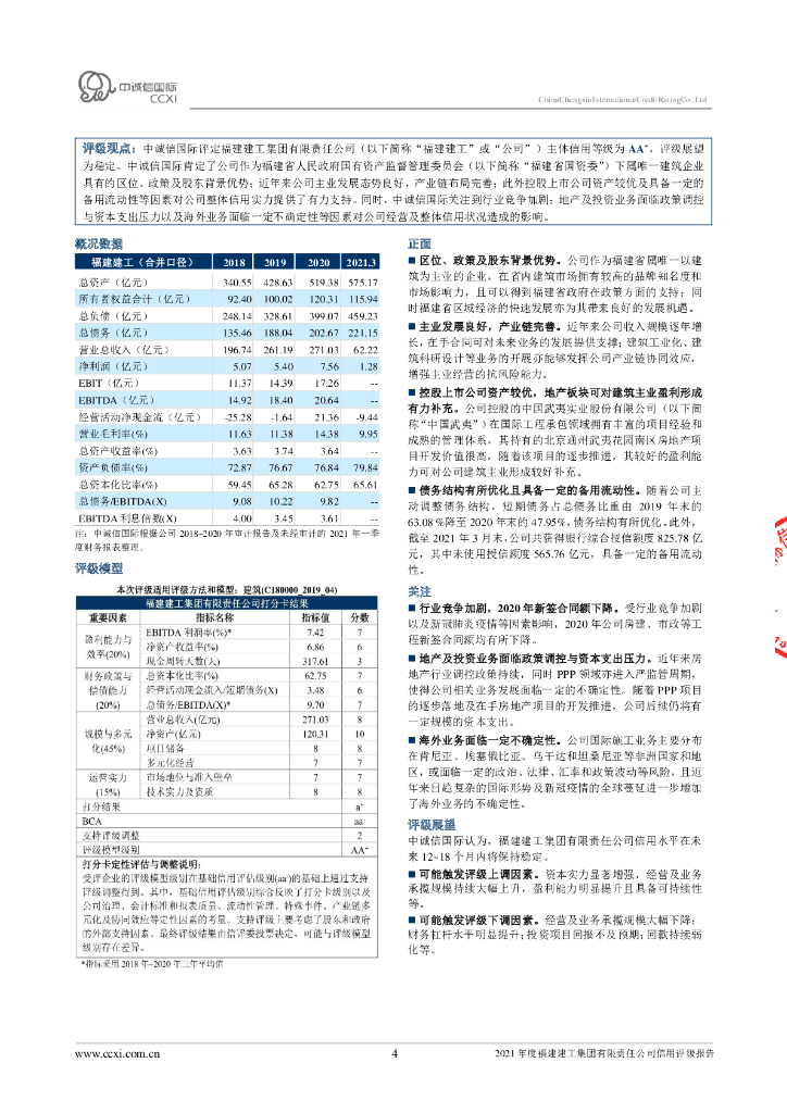 中诚信:福建建工集团有限责任公司信用评级报告及跟踪评级安排.pdf