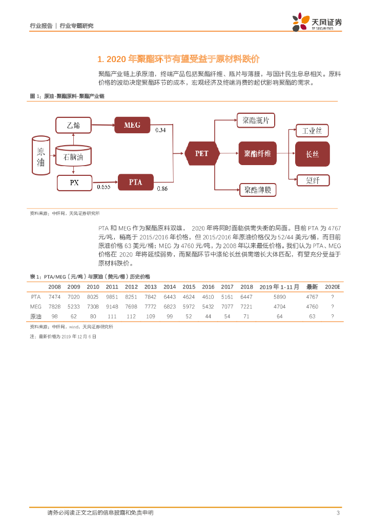 天风证券:石油化工行业专题研究:十年难遇PTA、MEG双双跌价,聚酯环节有望受益.pdf
