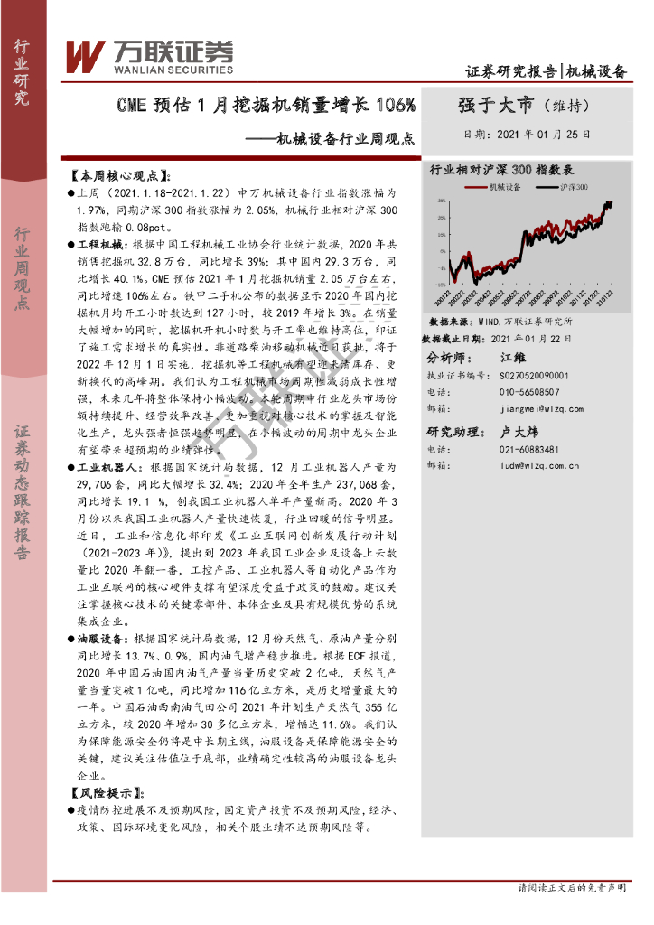 万联证券:机械设备行业周观点:CME预估1月挖掘机销量增长106%.pdf