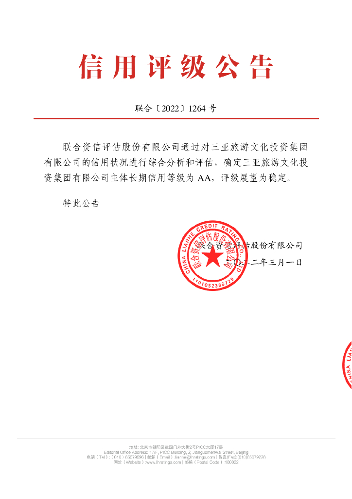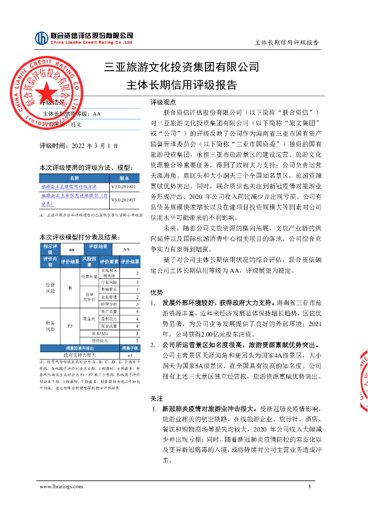 联合资信:三亚旅游文化投资集团有限公司主体长期信用评级报告.pdf