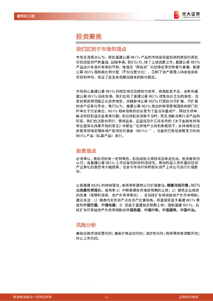 光大证券:建筑装饰行业专题研究之四:首批基建公募REITs发行超预期,期待建筑企业价值重估.pdf