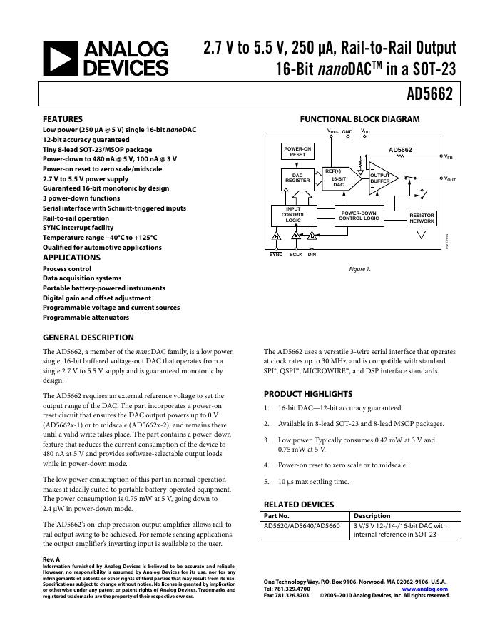 ANALOG DEVICES AD5662 英文产品数据手册 Rev A.pdf