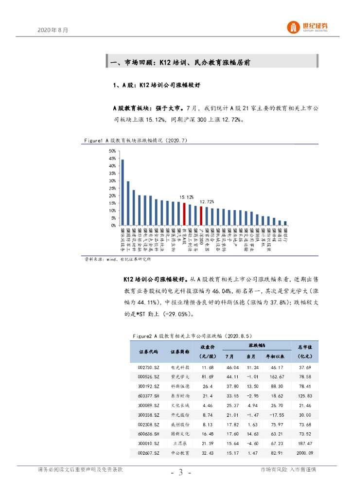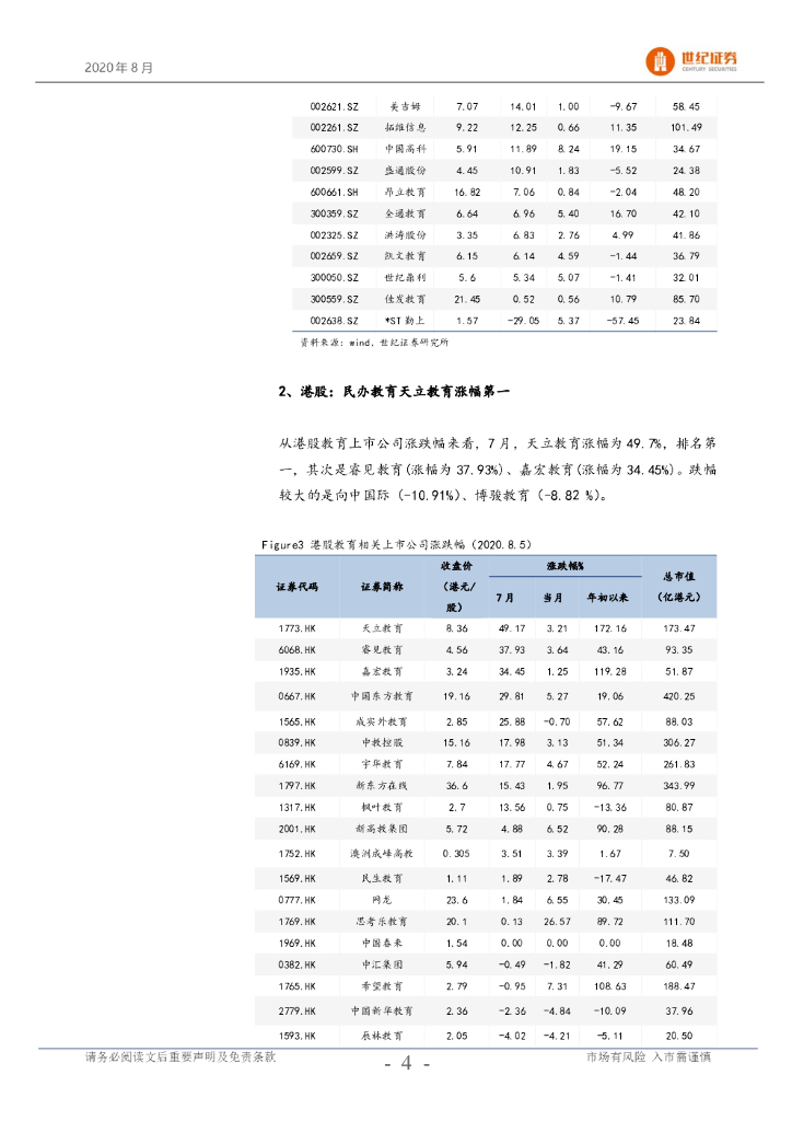 世纪证券:教育行业2020年7月报:建议关注民办教育、在线教育.pdf