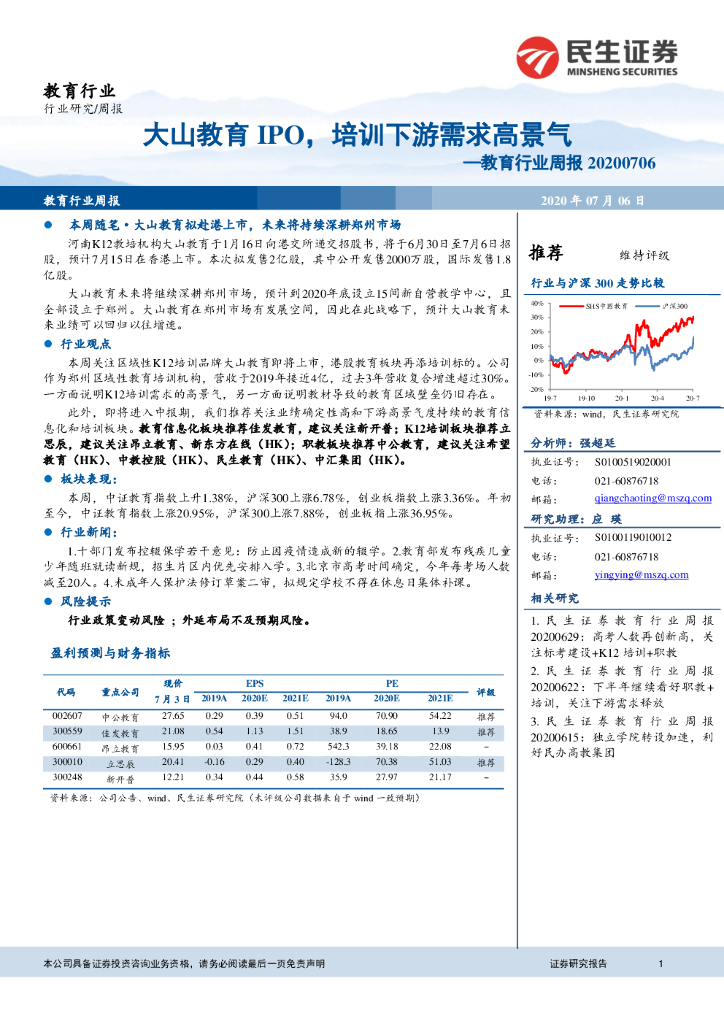 民生证券:教育行业周报:大山教育IPO,培训下游需求高景气.pdf