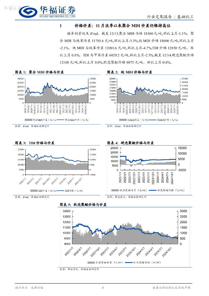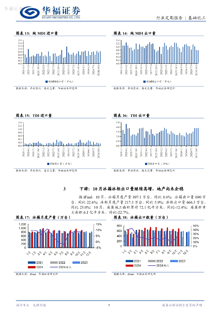 华福证券:基础化工行业聚氨酯11月月报:淡季以来聚合MDI价差仍维持高位,冰箱冰柜产量、出口同比高增.pdf