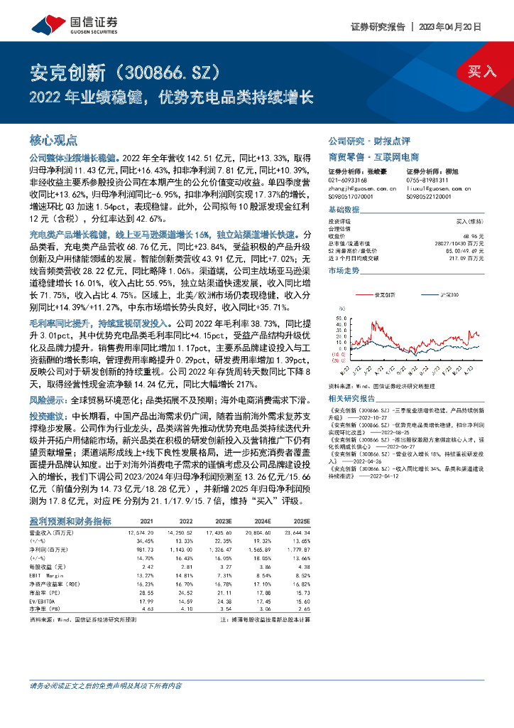国信证券:安克创新(300866)-2022年业绩稳健,优势充电品类持续增长.pdf
