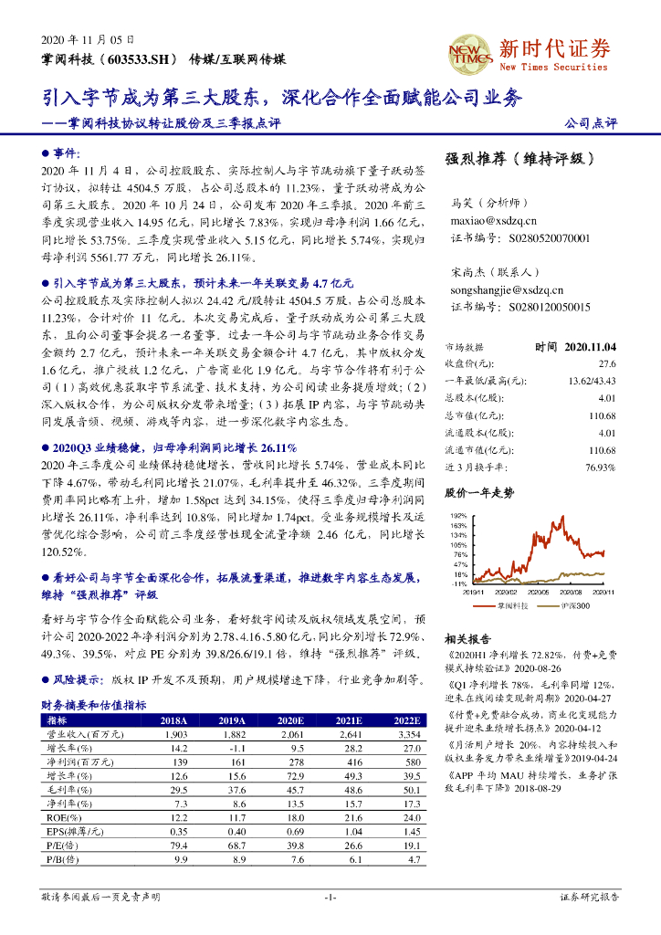 新时代证券:掌阅科技协议转让股份及三季报点评:引入字节成为第三大股东,深化合作全面赋能公司业务.pdf