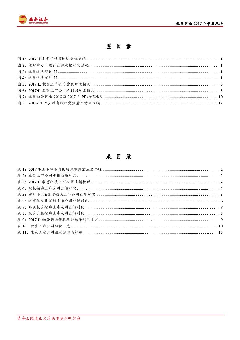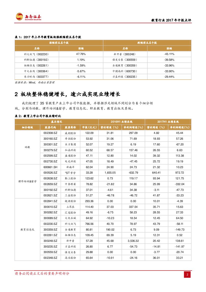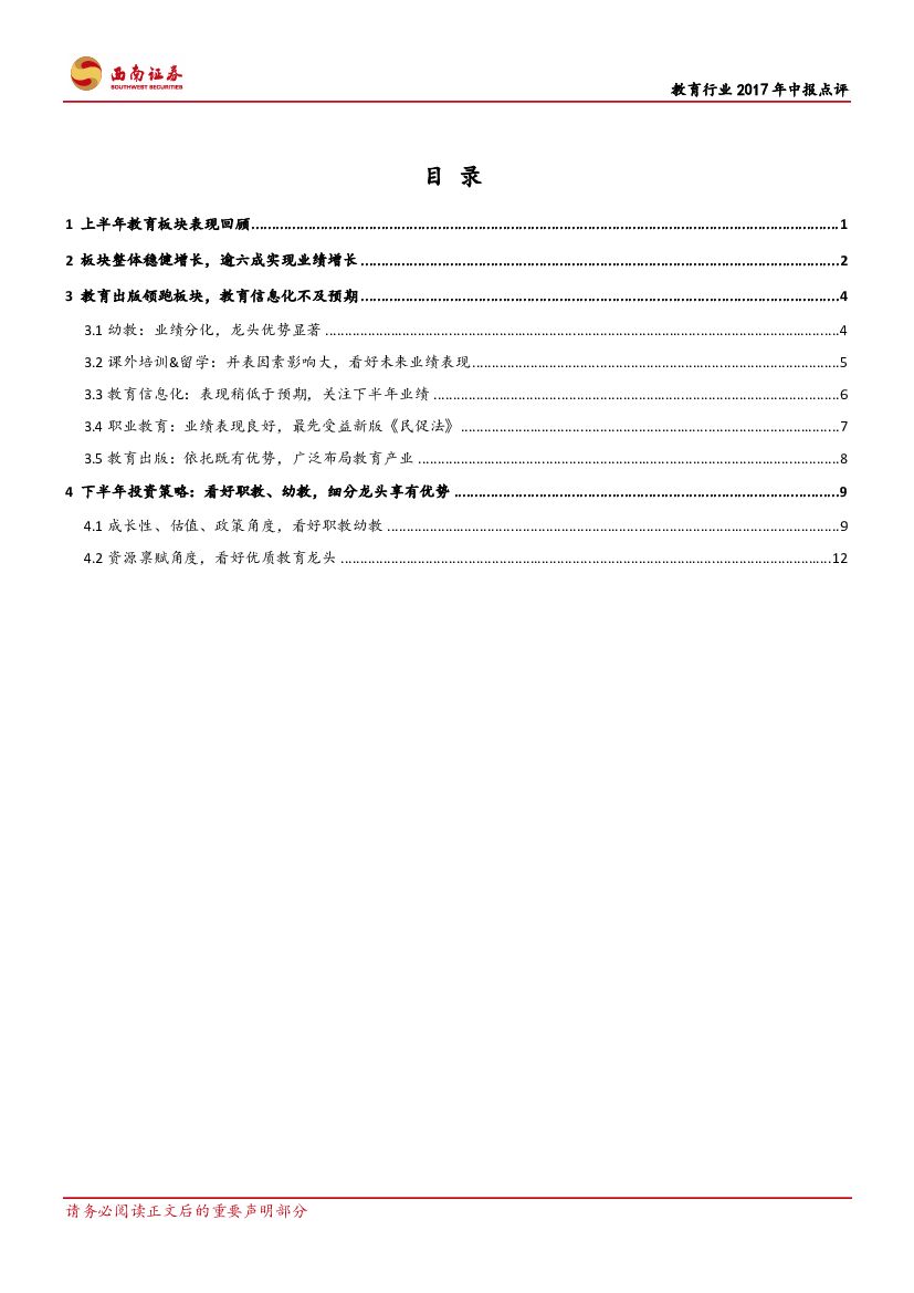 西南证券:教育行业2017年中报点评:职教、幼教成长明确,看好优质教育龙头.pdf