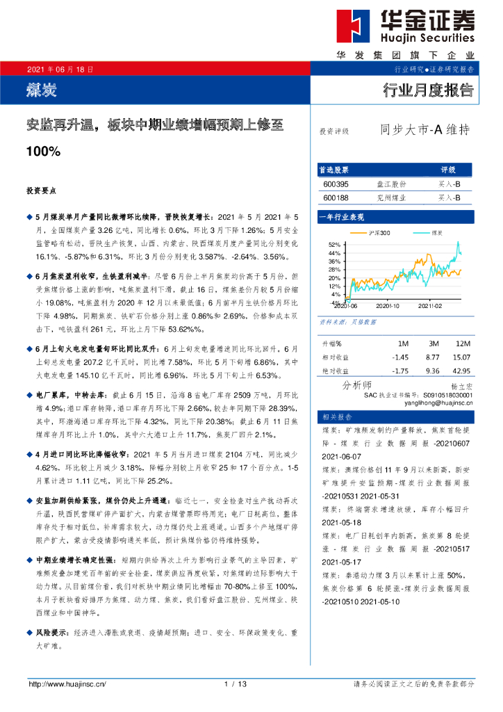 华金证券:煤炭行业月度报告:安监再升温,板块中期业绩增幅预期上修至100%.pdf