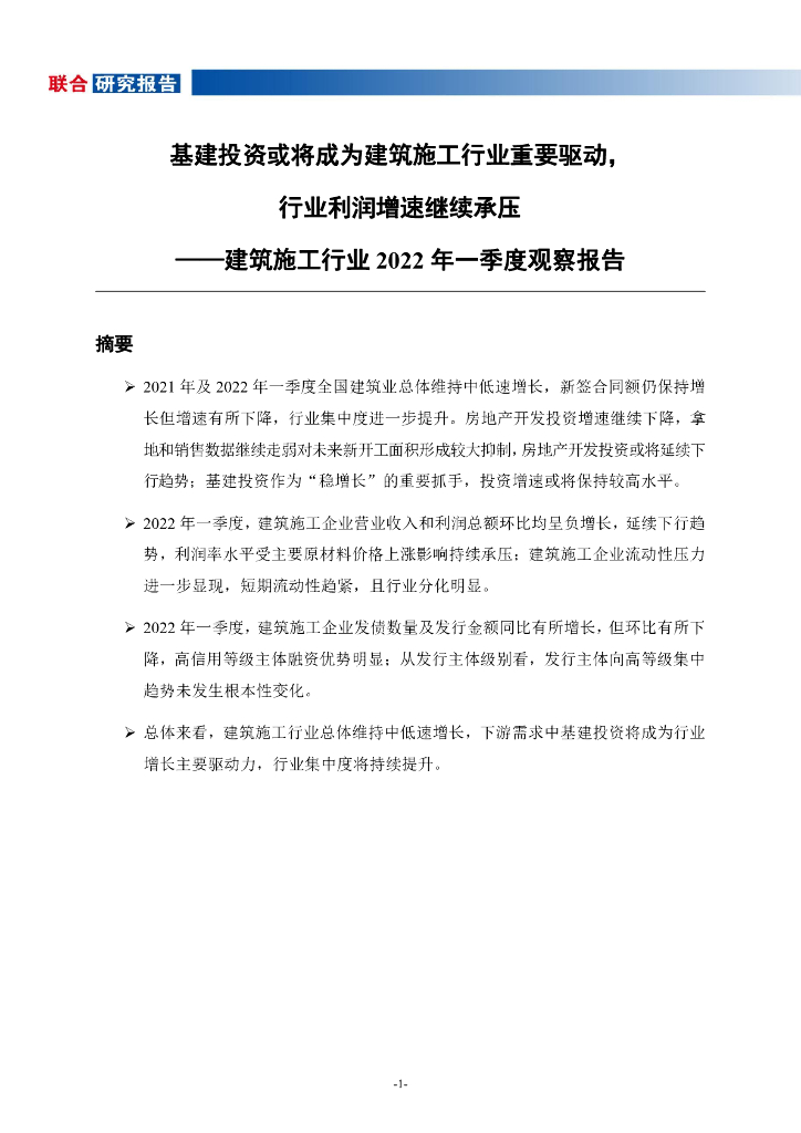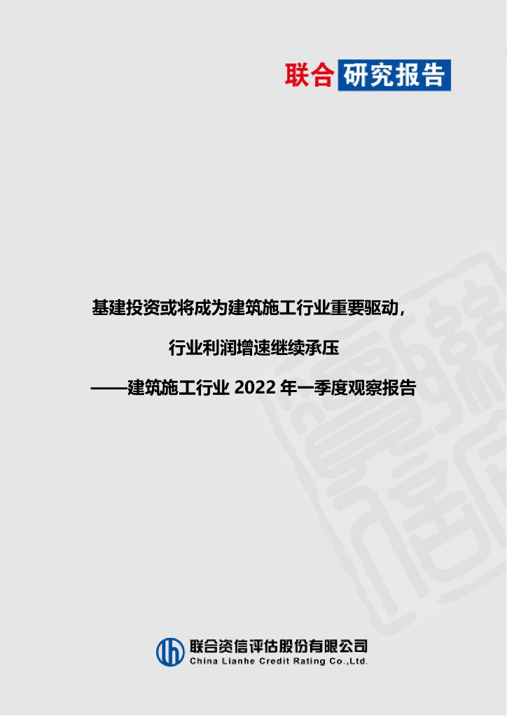 联合资信:基建投资或将成为建筑施工行业重要驱动,行业利润增速继续承压-建筑施工行业2022年一季度观察报告.pdf