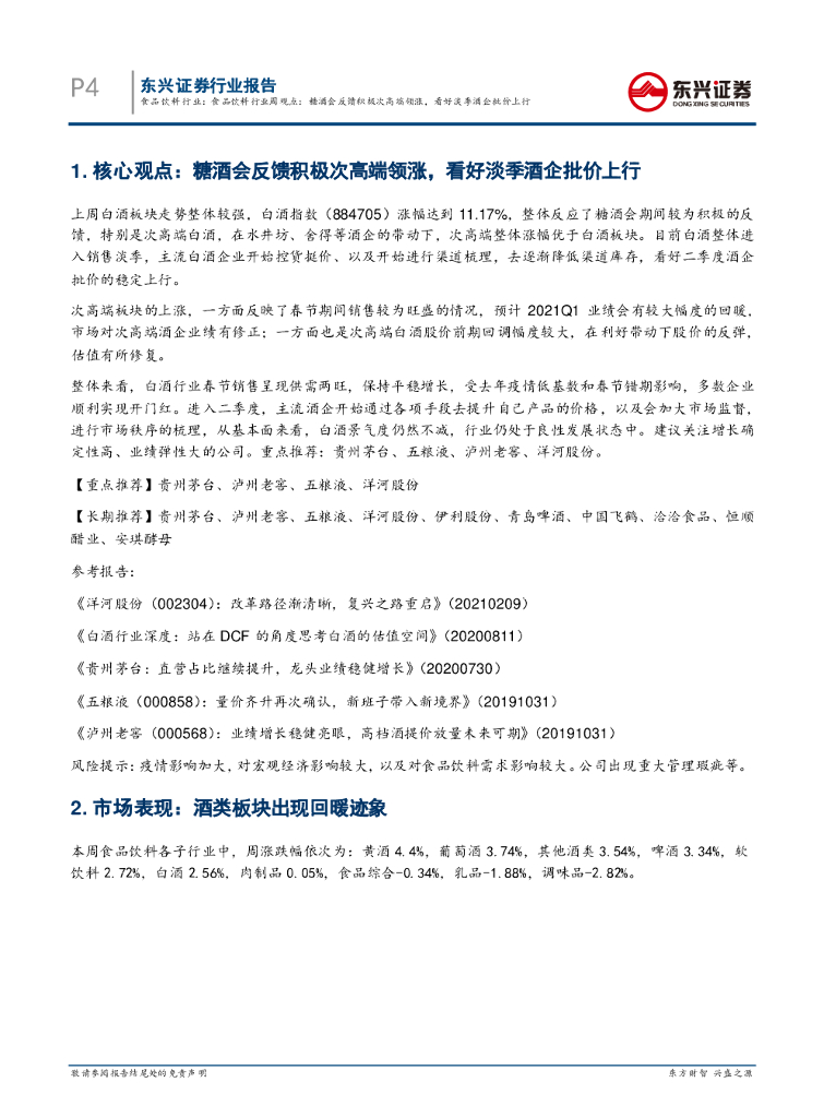 东兴证券:食品饮料行业周观点:糖酒会反馈积极次高端领涨,看好淡季酒企批价上行.pdf