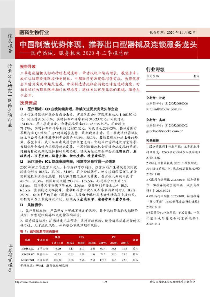 浙商证券:医疗器械、服务板块2020年三季报总结:中国制造优势体现,推荐出口型器械及连锁服务龙头.pdf