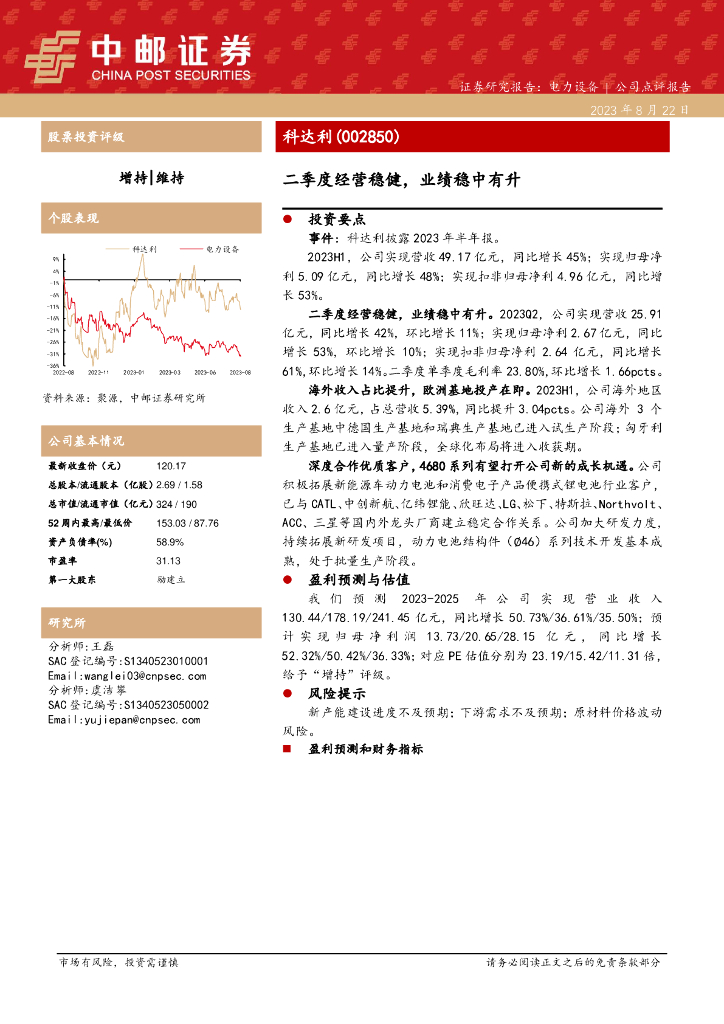 中邮证券:科达利(002850)-二季度经营稳健,业绩稳中有升.pdf