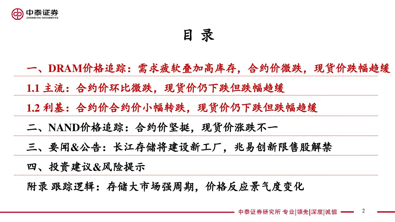 中泰证券:存储板块追踪二:利基DRAM合约价小幅转跌仍处高位,NAND合约价持续坚挺.pdf