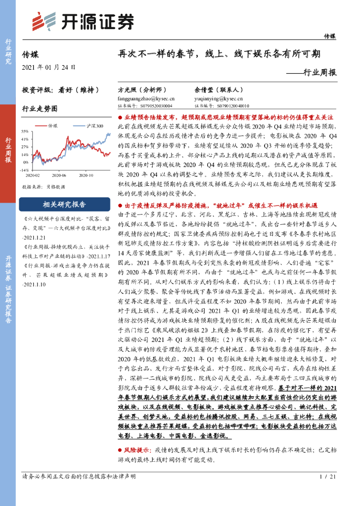 开源证券:传媒行业周报:再次不一样的春节,线上、线下娱乐各有所可期.pdf