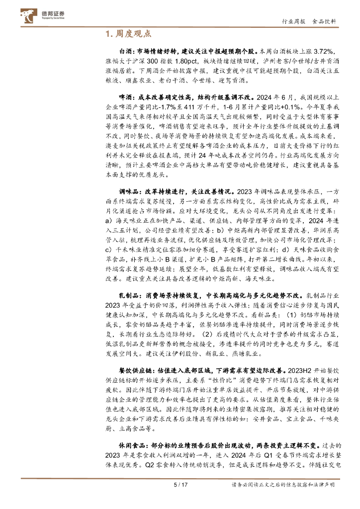 德邦证券:食品饮料行业周报:板块情绪回暖,建议关注中报超预期个股.pdf