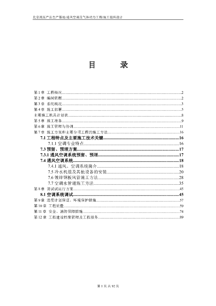 北京液压产品生产基地通风空调及气体动力工程施组设计(111页).doc