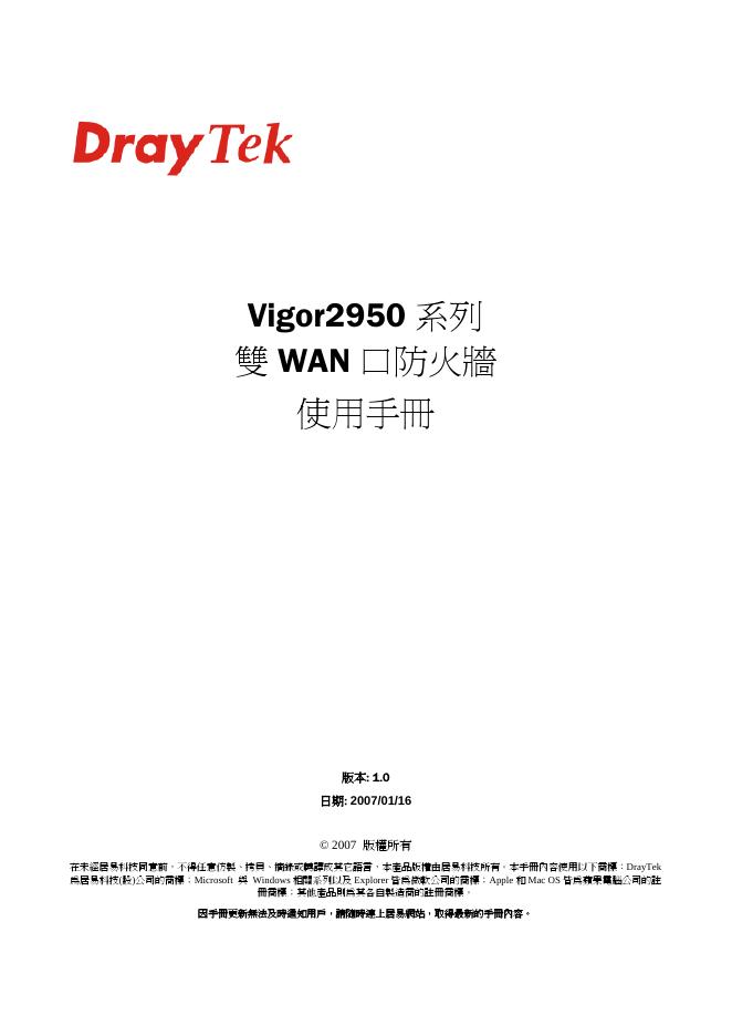 DrayTek Vigor2950 系列 雙 WAN 口防火牆 使用手冊.pdf