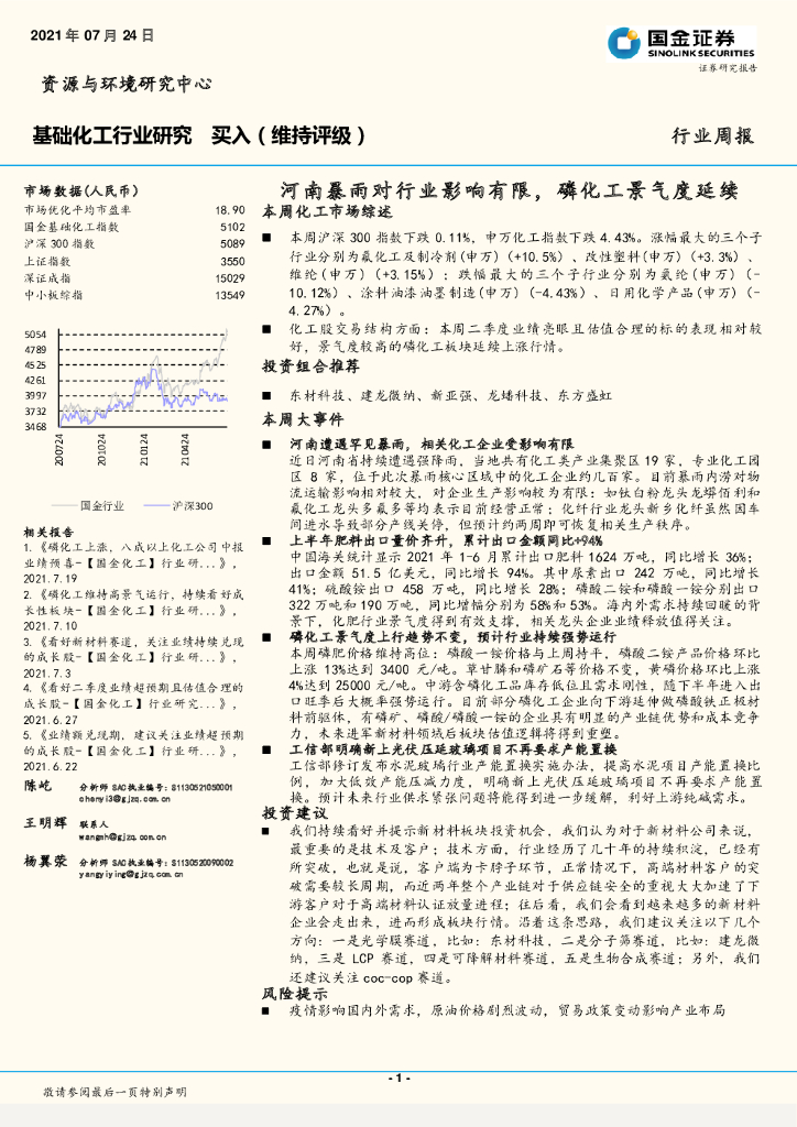 国金证券:基础化工行业研究:河南暴雨对行业影响有限,磷化工景气度延续.pdf