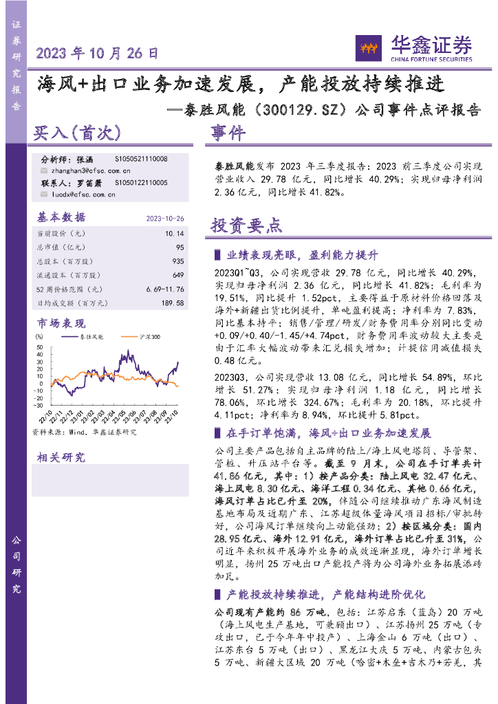 华鑫证券:泰胜风能(300129)-公司事件点评报告:海风+出口业务加速发展,产能投放持续推进.pdf