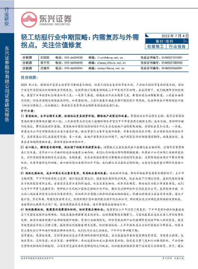 东兴证券:轻工纺服行业中期策略:内需复苏与外需拐点,关注估值修复.pdf