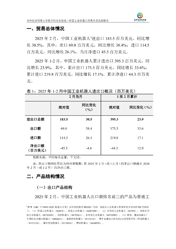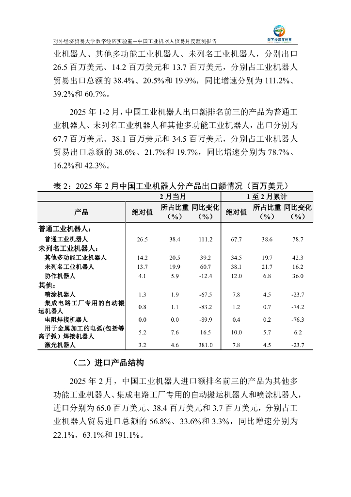 对外经济贸易大学:中国工业机器人贸易月度监测报告(2025年1-2月).pdf